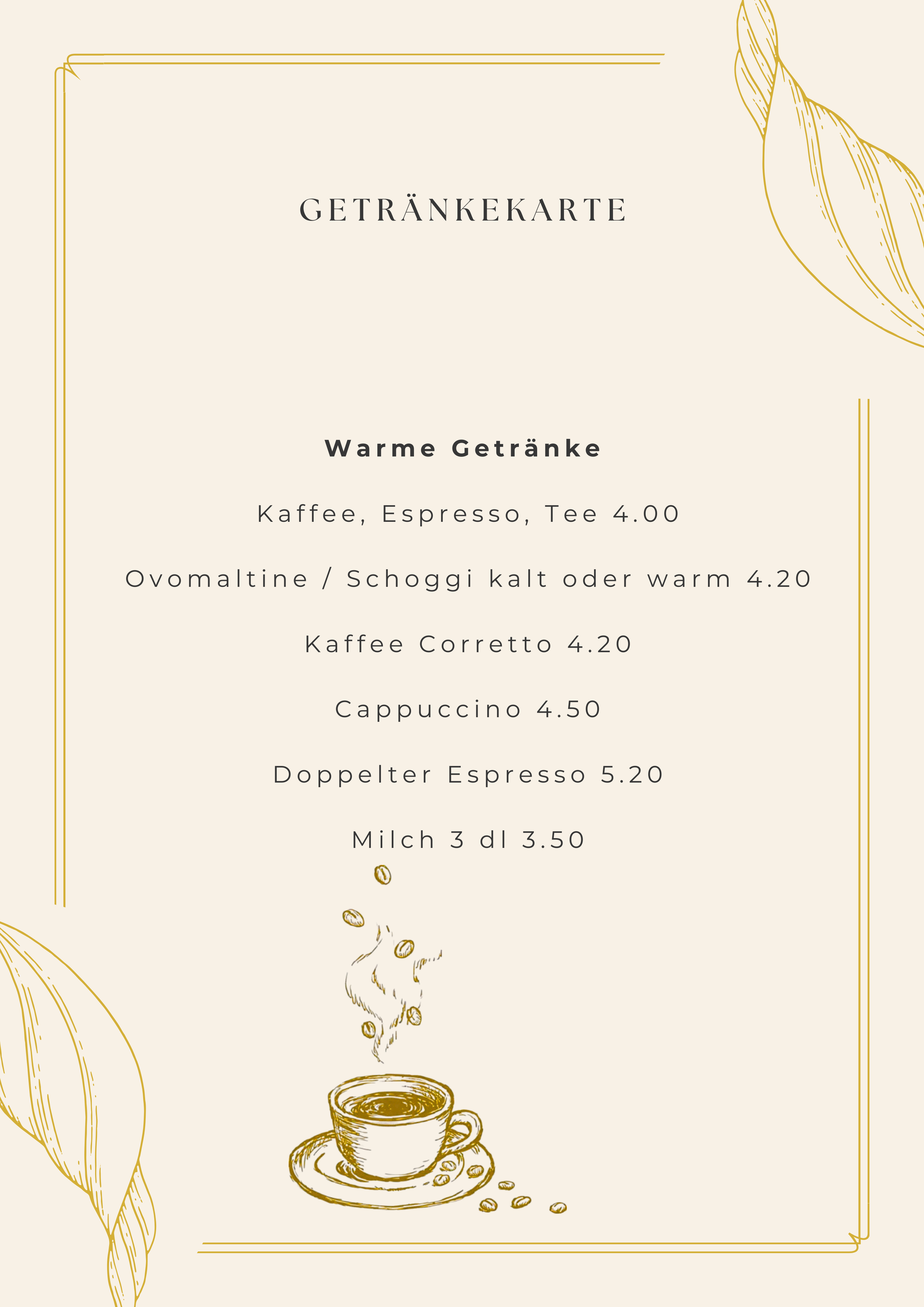 Getränkekarte – warme getränke