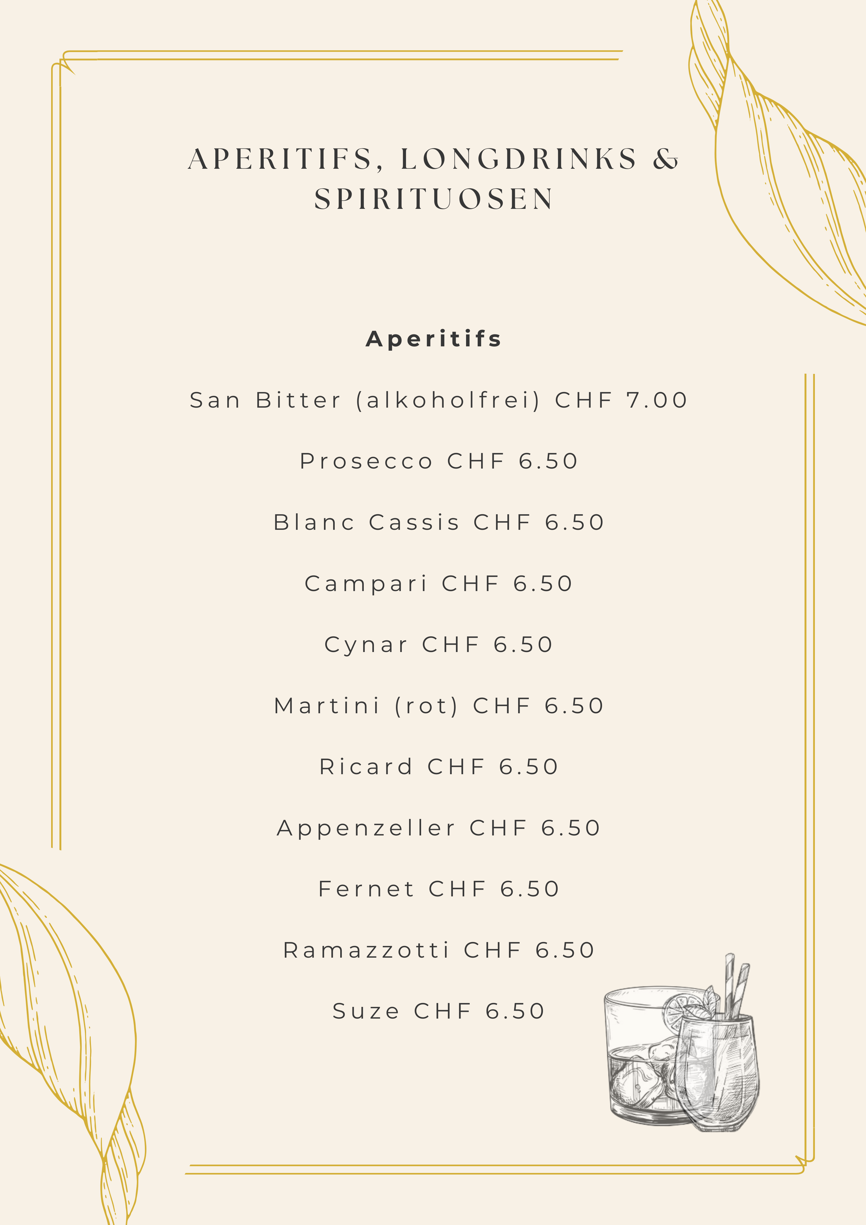 Aperitifs, longdrinks & spirituosen